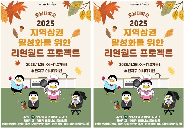 [위키트리 광주전남취재본부 노해섭 기자]호남대학교(총장 박상철)가 지역 상권 활성화와 실무 중심 교육을 연계한 특화형 현장 실습 프로그램 ‘2025 리얼월드 프로젝트(Real World Project)’를 오는 11월 26일부터 27일까지 이틀간 광주광역시 수완지구에 위치한 복합외식문화공간 ‘어나더키친’에서 개최한다.
