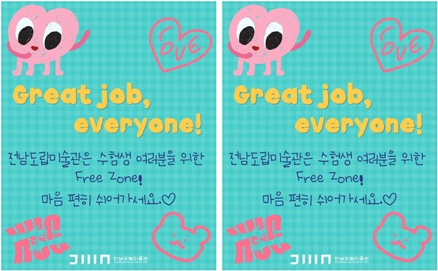 이지호 전남도립미술관장은 “오랜 시간 노력한 수험생들이 예술을 통해 잠시 마음의 여유를 찾고 새로운 시작을 준비하길 바란다”며 “전남도립미술관이 그 여정에 함께하는 따뜻한 문화공간이 되길 기대한다”고 말했다.
