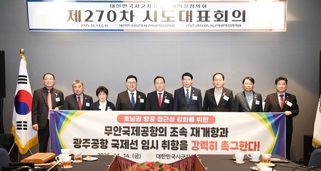 지난 14일 전주에서 열린 전국 자치구 의장 협의회에서 김 의장은 무안공항 조기 재개항과 광주공항 국제선 임시 운항 추진을 공식 제안했다.