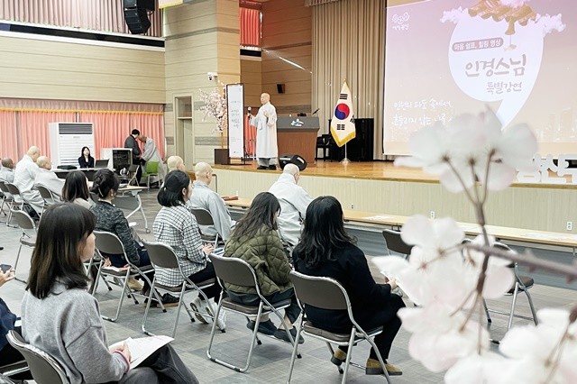 지난 14일, 구청 강당은 묵언 수행의 공간으로 변신했고, 100여 명의 대민 업무 공직자들은 잠시 복잡한 서류를 내려놓고 자신의 내면을 들여다보는 귀한 시간을 가졌다.