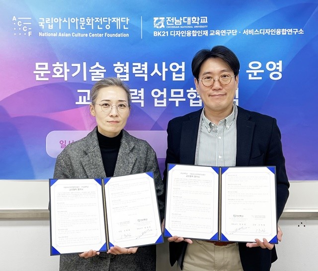 정정호 전남대 BK21 교육연구단장(디자인학과 교수)은 “이번 협약은 학문과 산업, 예술과 기술이 유기적으로 만나는 새로운 협력의 출발점”이라며 “지역과 국제를 잇는 문화기술 융합 연구 플랫폼을 구축하고, 미래형 창의인재 양성에 기여하겠다”고 밝혔다.