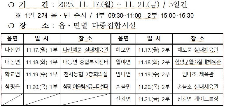 나산면에서 시작해 신광면에서 마무리되는 5일간의 강행군은, 단 한 명의 군민이라도 더 만나기 위한 세심한 배려로 채워졌다. 하루 두 차례, 오전과 오후로 나누어 진행되는 일정은 생업으로 바쁜 주민들의 참여 기회를 최대한 보장하기 위한 것이다. 군수가 주민을 기다리는 것이 아니라, 주민의 시간에 군수가 맞추는 ‘역발상 소통’인 셈이다.