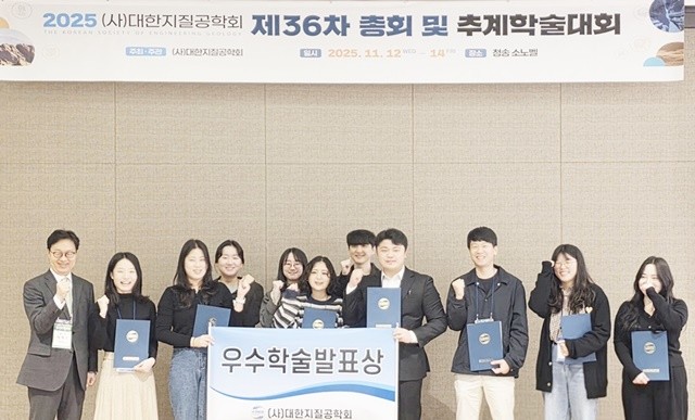 [위키트리 광주전남취재본부 노해섭 기자]호남대학교 토목환경공학과 서혁 교수 연구팀이 11월 13일부터 14일까지 청송 소노벨에서 사흘간 열린 (사)대한지질공학회 ‘2025년 추계학술발표회’에서 포스터 부문 우수학술발표상을 수상했다.