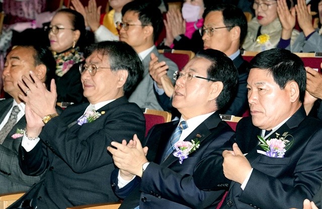[위키트리 광주전남취재본부 노해섭 기자]김영록 전라남도지사가 16일 담양문화회관에서 열린 ‘제46회 남도국악제 개막식’ 행사에서 개막공연을 관람하고 있다.