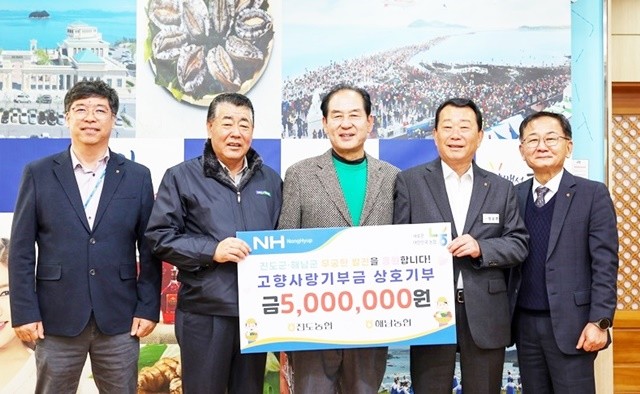 진도농협은 지난 해남미남축제에서 해남군에 고향사랑기부금 500만 원을 기부했으며, 이번에는 해남농협이 진도군에 고향사랑기부금 500만 원을 전달하며 서로를 응원하는 따뜻한 마음과 지역 상생의 의미를 나눴다.