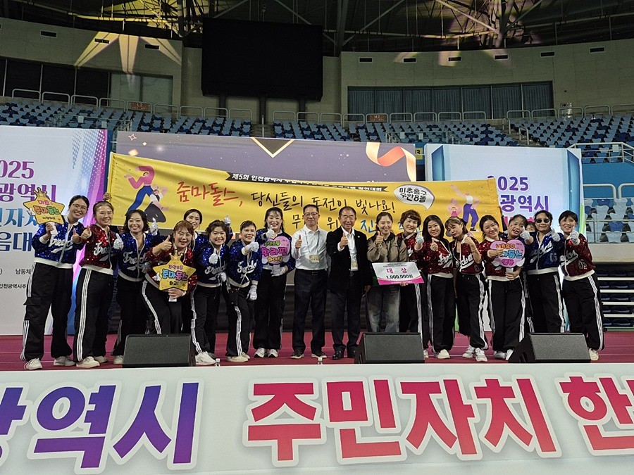 인천 미추홀구(구청장 이영훈)는 지난 15일 남동체육관에서 개최된 ‘제5회 인천시 주민자치 한마음대회’에서 ▲주안8동 주민자치회 ‘핫라핏 댄스’ 팀이 동아리 경연대회 ‘대상’을, ▲미추홀구 대표팀이 명랑운동회에서 ‘장려상’을 수상했다고 17일 밝혔다.
