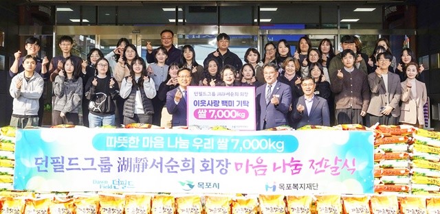 [위키트리 광주전남취재본부 노해섭 기자]목포시는 지난 11월 14일 던필드그룹(회장 서순희)이 어려운 이웃을 위해 백미 10kg 700포(약 2,000만 원 상당)를 기탁했다고 밝혔다.