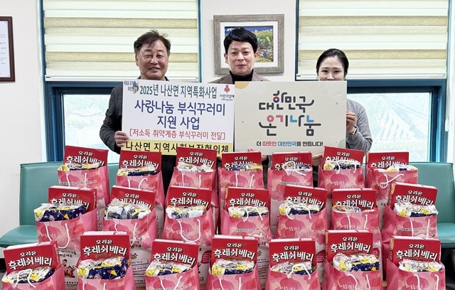 정석 나산면장은 “작은 나눔이지만 이웃에게 실질적인 도움이 되길 바란다”며, “앞으로도 지역만의 세심한 복지 체계를 더욱 강화해 어렵고 외로운 이웃들이 안전하고 따뜻한 겨울을 보낼 수 있도록 최선을 다하겠다”고 전했다.