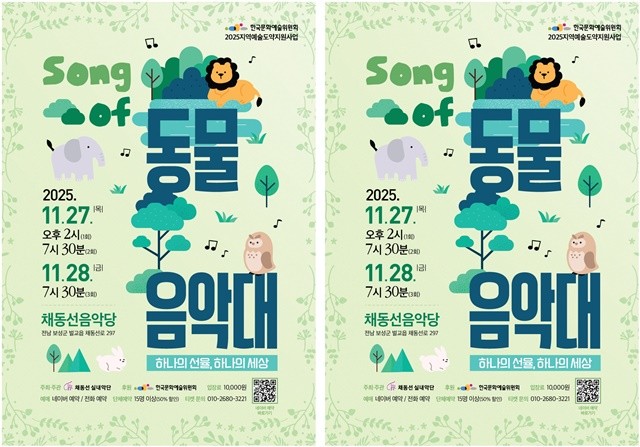 김정호 예술감독은 “연주자들이 음악으로 말하고, 관객이 마음으로 듣는 경험이 『Song of 동물음악대』가 전하고자 하는 예술의 진심”이라며 “이번 공연이 지역에서 세계로 확장되는 평화와 생명의 노래가 되길 바란다.”라고 전했다.