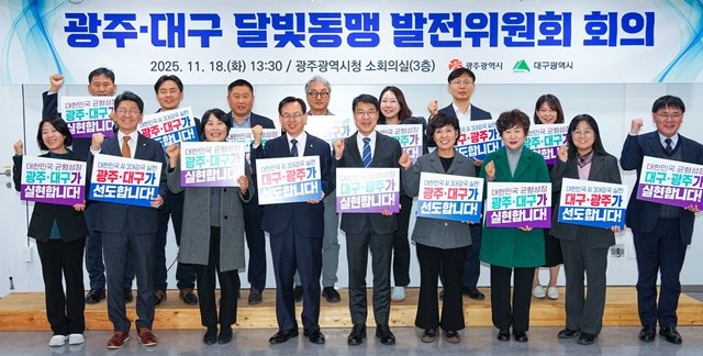 [위키트리 광주전남취재본부 노해섭 기자]광주광역시(시장 강기정)와 대구광역시가 18일 시청 3층 소회의실에서 ‘광주·대구 달빛동맹 발전위원회’를 열어 두 도시 간 실질적인 협력 강화 방안을 논의했다.