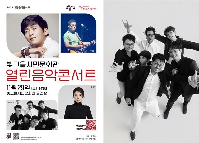 [위키트리 광주전남취재본부 노해섭 기자]광주문화재단은 오는 11월 29일 빛고을시민문화관 공연장에서 ‘2025 대중음악콘서트(2회차)’를 전석 무료로 개최한다고 밝혔다. 이번 공연은 시민 문화복지 실현과 문화 접근성 확대를 위한 열린 음악회로, 지역민 누구나 부담 없이 참여할 수 있는 공공기획 공연이다.