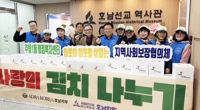 [위키트리 광주전남취재본부 노해섭 기자]㈔아드라코리아 호남지부(지부장 김택수)는 최근 김장철을 맞아 광주시 남구 주월1동 행정복지센터에 ‘사랑의 김장김치 100상자’를 후원하며 이웃사랑을 실천했다.