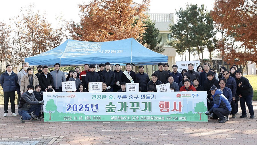 인천시 중구(구청장 김정헌)는 지난 18일 영종하늘도시 37호 근린공원(운남동 1722-84)에서 ‘2025년도 숲가꾸기 행사’를 성황리에 진행했다.