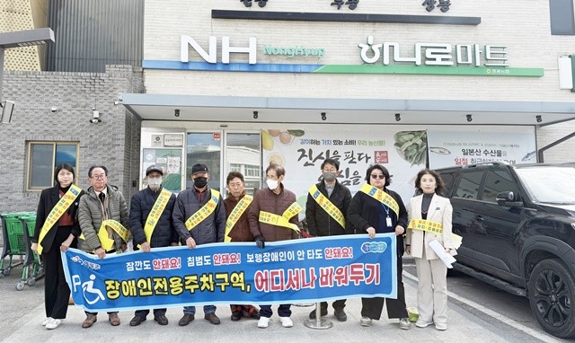 [위키트리 광주전남취재본부 노해섭 기자]영광군(군수 장세일)은 17일 터미널 주변 및 마트인근 주차장을 중심으로 영광군 장애인편의증진 기술지원센터 및 (사)전라남도 지체장애인협회 영광군지회와 민관합동으로 집중 단속을 실시했다.