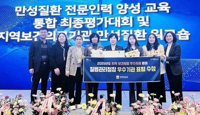 [위키트리 광주전남취재본부 노해섭 기자]전라남도(도지사 김영록)는 19일까지 이틀간 여수 디오션리조트에서 개최된 2025 만성질환 전문인력 양성교육 통합 최종 평가대회에서 지역 보건사업 우수사례 분야 우수기관으로 선정됐다고 밝혔다.