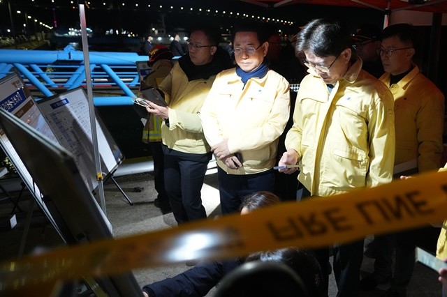 [위키 포토]퀸제누비아2호 좌초 사고 구조자 이송 현황 확인하는 김영록 도지사