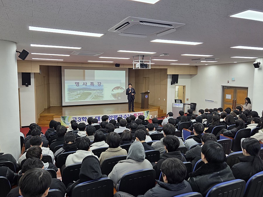 전진선 양평군수는 지난 19일 용문고등학교 소강당에서 3학년 학생 140여 명을 대상으로 ‘큰 꿈을 향한 준비가 미래를 여는 힘’을 주제로 명사 특강을 진행했다.