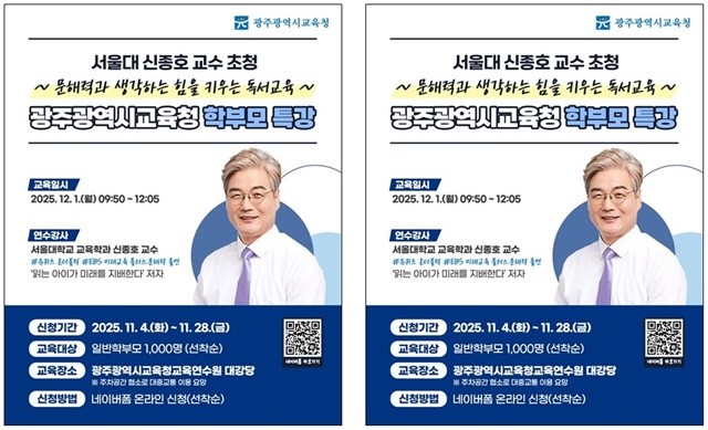 관심 있는 광주 지역 학부모면 누구나 천명 선착순으로 참여할 수 있다. 참가를 원하는 학부모는 오는 28일까지 안내된 QR코드 및 네이버 폼을 통해 신청이 가능하다.