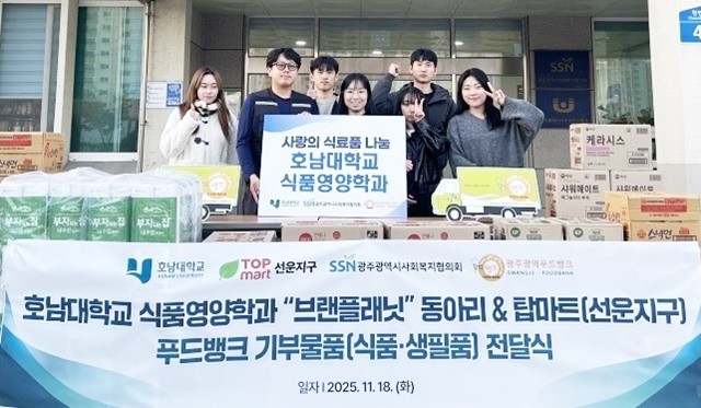 [위키트리 광주전남취재본부 노해섭 기자]호남대학교 식품영양학과(학과장 이승익) 학생들이 지난 10월 29일부터 31일까지 교내에서 열린 ‘2025 어등제’ 축제 기간 동안 취·창업센터의 지원을 받아 운영한 ‘미강 업사이클링 휘낭시에’ 디저트 부스 수익금 전액을 광주광역시사회복지협의회 및 푸드뱅크에 기부했다.