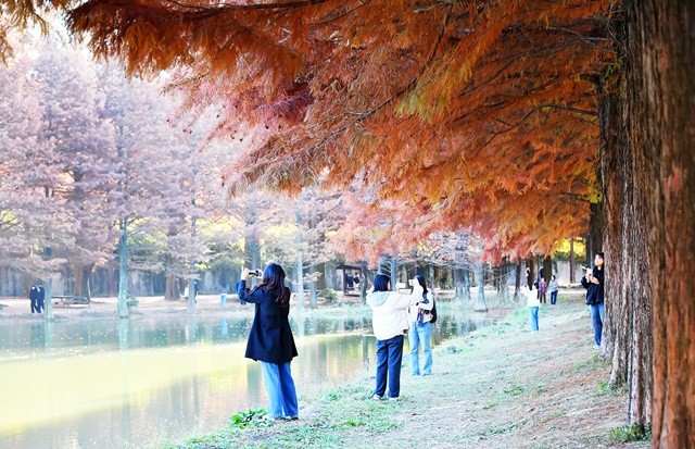 [위키트리 광주전남취재본부 노해섭 기자]계절의 시계가 겨울을 향해 초침을 재촉하는 11월의 끝자락, 전남 담양군의 숲이 1년 중 가장 뜨겁고 찬란한 마지막 불꽃을 태우고 있다. 하늘을 찌를 듯 솟은 메타세쿼이아 나무들이 저마다 붉고 노란 옷으로 갈아입으며 만들어낸 ‘빛의 터널’은, 이대로 가을을 떠나보내기 아쉬운 이들의 발길을 붙잡는 거부할 수 없는 마법을 부리고 있다.