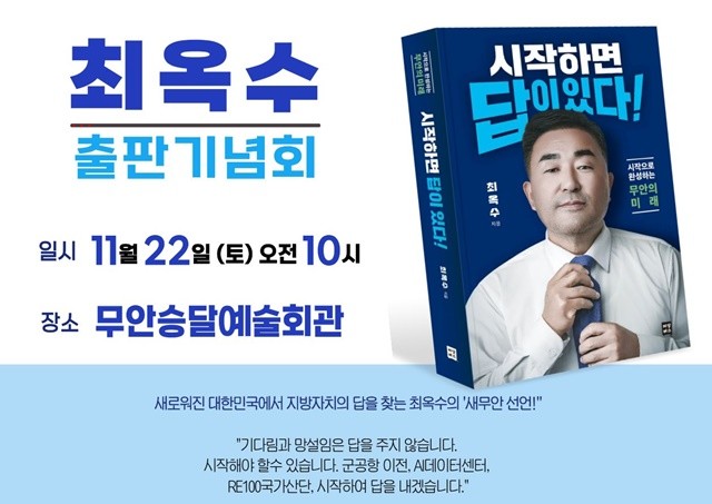 내년 지방선거의 ‘최대어’로 꼽히는 최옥수 전 무안군산림조합장이 자신의 삶과 무안의 미래를 담은 책 "시작하면 답이 있다"를 세상에 내놓으며, 사실상의 ‘출정식’을 방불케 하는 성대한 출판기념회를 연 것이다.