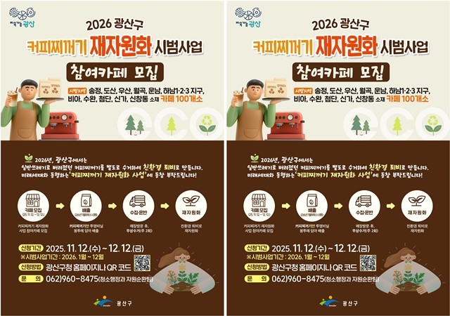 참여를 희망하는 커피전문점은 12월 12일까지 광산구 누리집이나 정보무늬(QR 코드)를 통해 신청하면 된다.