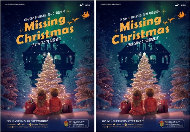 [위키트리 광주전남취재본부 노해섭 기자]광주시 광산구(구청장 박병규)가 12월 2일 광산문화예술회관에서 천원문화마실 제8편 창작가족음악극 ‘Missing Christmas-크리스마스가 실종됐다!’를 선보인다.
