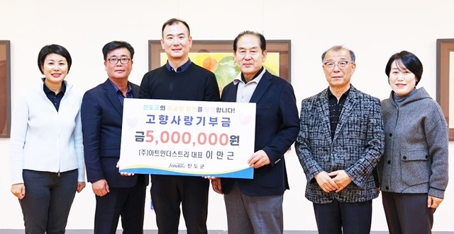 [위키트리 광주전남취재본부 노해섭 기자]㈜아트인더스트리의 이만근 대표가 진도군에 고향사랑기부금 500만 원을 전달하며 따뜻한 지역 사랑을 실천했다. 평소 사회공헌에 앞장서 온 이 대표는 진도에서 느낀 감동을 나눔으로 이어갔다.