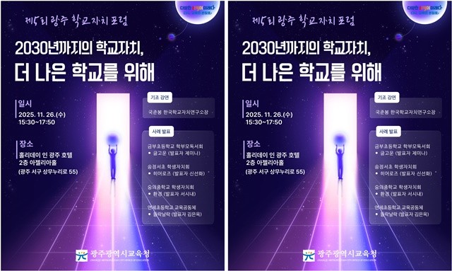 [위키트리 광주전남취재본부 노해섭 기자]광주시교육청(교육감 이정선)이 오는 26일 홀리데이 인 광주 호텔 2층 아젤리아홀에서 ‘제5회 광주 학교자치 포럼’을 개최한다.