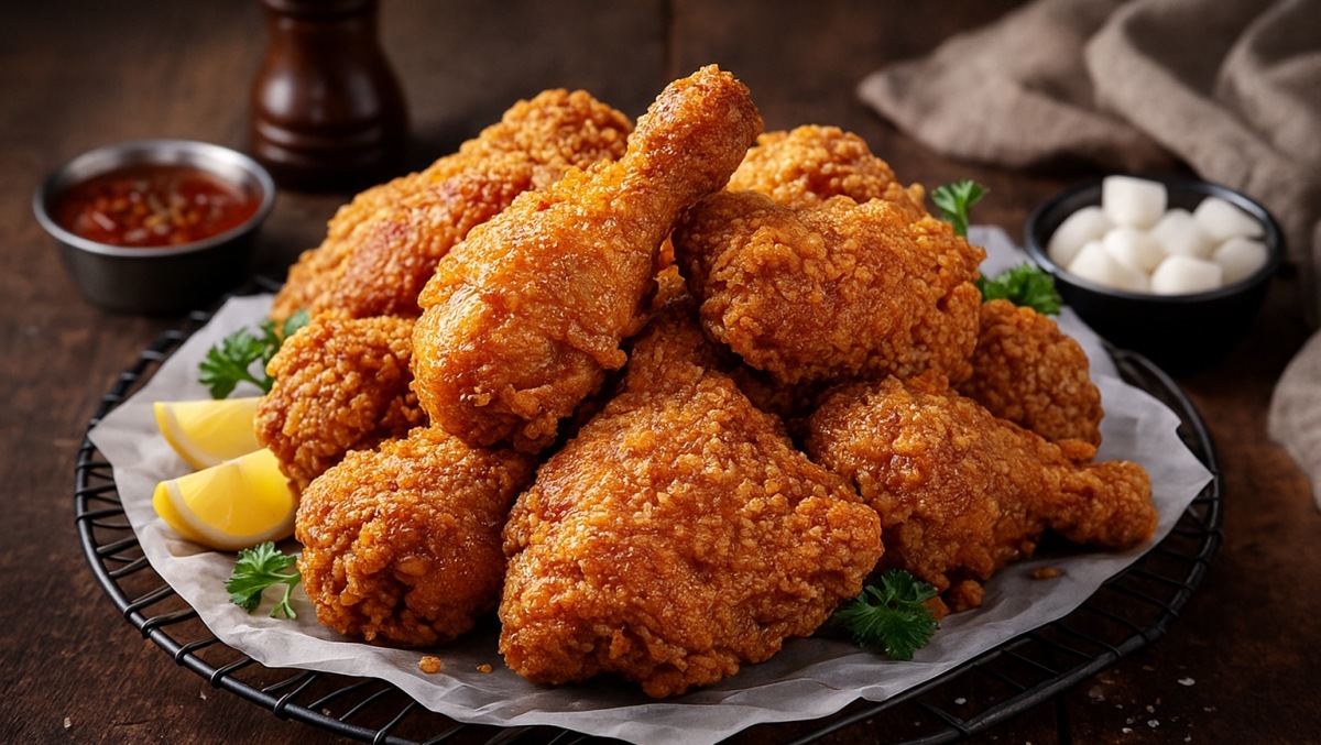 한국인이 사랑하는 대표 국민 먹거리인 치킨은 남녀노소 누구나 즐기는 음식으로 바삭한 식감과 고소한 풍미가 특징이다. 특히 튀김옷의 적절한 두께와 바삭함, 촉촉한 속살의 대비가 한국 치킨의 매력을 한층 더 높여준다.