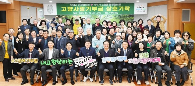 [위키트리 광주전남취재본부 노해섭 기자] 담양군은 지난 21일 군청 면앙정실에서 제주시 노형동 통장협의회와 담양군 이장협의회가 함께한 가운데 총 620만 원 규모의 고향사랑 상호기탁 행사를 개최했다고 밝혔다.