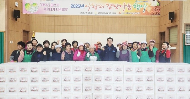 송병석 대덕읍 지역사회협의체장은 “어려운 이웃들을 돕기 위 매년 새벽부터 한걸음에 달려와 김장 나눔 행사를 위해 동참하신 김복순 회장님과 새마을부녀회에 감사드리며, 이번 행사를 시작으로 이웃을 향한 나눔과 관심이 지역사회 전체로 이어지길 바란다”고 말했다.
