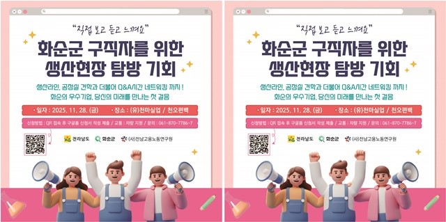 참여를 희망하는 구직자는 홍보 포스터에 안내된 QR코드를 통해 신청서를 제출하거나, 지역경제과 일자리정책팀(☎061-379-3153)으로 문의·신청하면 된다.