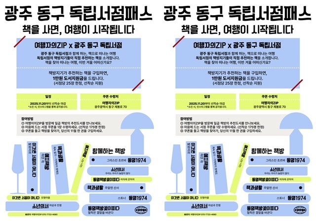 임택 동구청장은 “광주에서 가장 많은 독립서점을 품은 인문도시 동구에서 ‘독립서점패스’는 골목 상권과 문화를 잇는 중요한 매개체가 될 것”이라며, “앞으로도 지역의 소중한 문화 자원을 기반으로 한 복합문화 프로그램을 지속적으로 확대해 나가겠다”고 말했다.