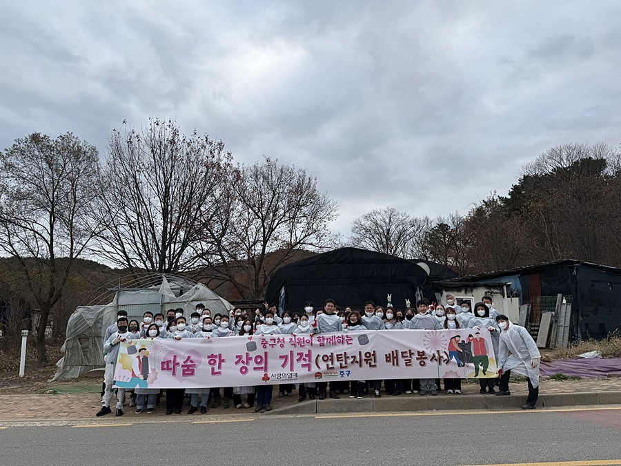 이번 ‘따숨 한 장의 기적’은 연탄 배달로 어려운 이웃의 따뜻한 겨울나기를 돕고, 나눔의 가치를 실천하는 데 목적을 둔 봉사 활동으로, 김정헌 구청장을 비롯한 중구청 직원 50여 명이 참여했다.