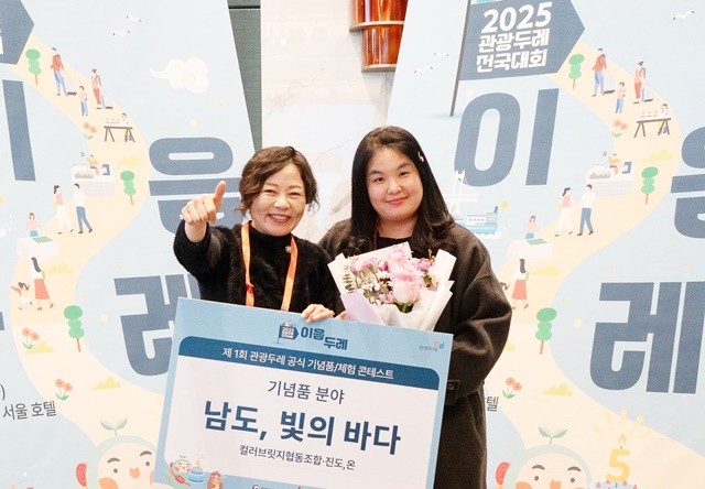 [위키트리 광주전남취재본부 노해섭 기자]진도군 주민사업체인 ‘진도, 온’이 문화체육관광부와 한국관광공사가 개최한 ‘2025 관광두레 전국대회-이음두레’에서 관광두레 공식 기념품 분야에 최종 선정되는 성과를 거뒀다.