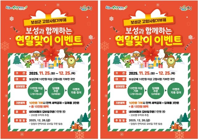 전남 보성군 고향사랑기부제, 연말 맞이 이벤트 추진