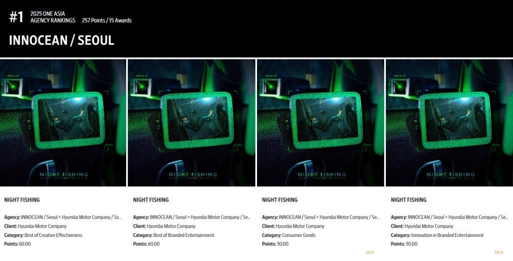 이노션은 쟁쟁한 글로벌 경쟁사들을 제치고 아시아 1위 에이전시 타이틀을 차지했으며, 현대차는 혁신적인 마케팅 행보를 인정받아 한국 브랜드 최초로 정상에 올랐다.