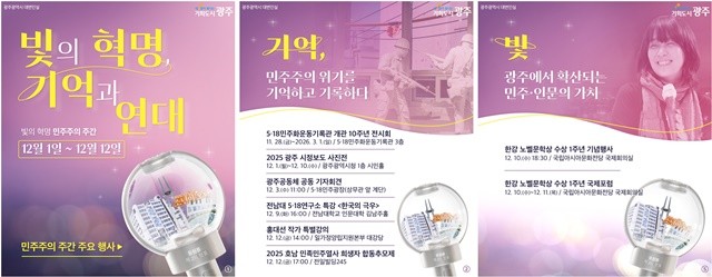 광주독립영화관에서는 12월 3일부터 6일까지 한강 작가 소설을 원작으로 한 영화와 계엄 관련 다큐멘터리를 무료로 상영하며, 5·18민주화운동기록관에서는 개관 10주년을 맞아 기념 전시회와 학술대회를 통해 시민들과 민주주의 기록의 가치를 공유한다.