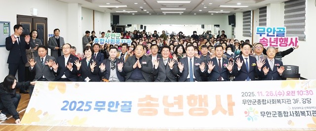 [위키트리 광주전남취재본부 노해섭 기자]무안군종합사회복지관(관장 정병순)은 지난 26일 복지관 강당에서 지역주민과 자원봉사자, 후원자등이 함께 한‘2025 무안골 송년행사’를 성황리에 개최하였다고 밝혔다.