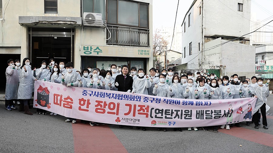 실제로 이날 중구청 직원과 중구사회복지협의회 회원 약 70여 명은 어려운 이웃을 돕겠다는 일념으로, 취약 계층 가정에 총 350여 장의 연탄을 배달하며 온정을 나눴다.