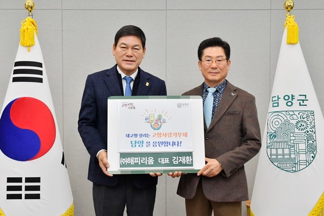 [위키트리 광주전남취재본부 노해섭 기자] 담양군은 지난 26일 ㈜해피리움 김재환 대표가 담양을 방문해 고향사랑기부금 100만 원을 전달했다고 밝혔다.