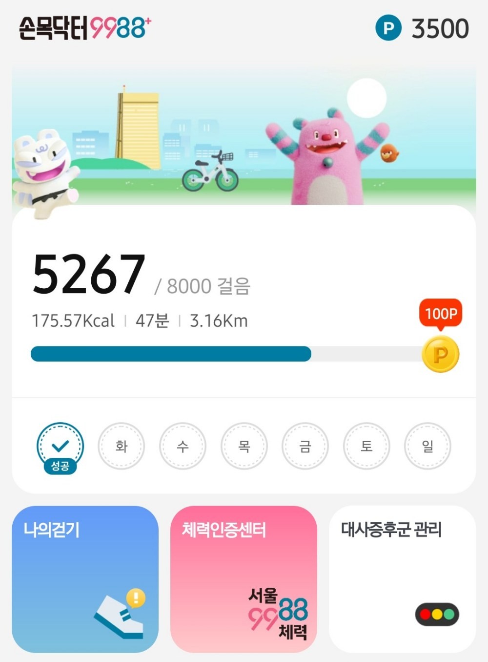 이 서비스가 더 매력적인 이유는 뜻밖의 보상 체계에 있다. 체력 측정을 완료하면 서울시 헬스케어 앱, ‘손목닥터9988’에서 현금처럼 쓸 수 있는 5,000 포인트를 받을 수 있기 때문이다. 건강을 챙기면서 용돈까지 쏠쏠하게 챙기는 구조다.