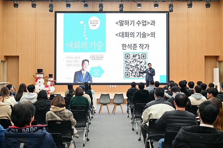 한석준 아나운서는 일상 속에서 바로 실천할 수 있는 소통 기술, 긍정의 힘을 높이는 말하기 태도, 상대와 함께 웃을 수 있는 대화 방법 등 자신의 경험을 바탕으로 한 생동감 있는 강연을 전했다.