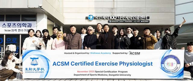 [위키트리 광주전남취재본부 노해섭 기자]스포츠의학 분야에서 세계 최고의 권위를 인정받는 미국스포츠의학회(ACSM)의 핵심 자격증을, 이제 국내 대학에서 직접 취득할 수 있는 길이 열렸다. 동신대학교 일반대학원 스포츠의학과가 국내 대학 최초로 ‘ACSM 공인 운동생리학자(ACSM-EP)’ 자격 특별연수를 성공적으로 마치며, 지역을 넘어 대한민국 스포츠의학 교육의 새로운 이정표를 세웠다.