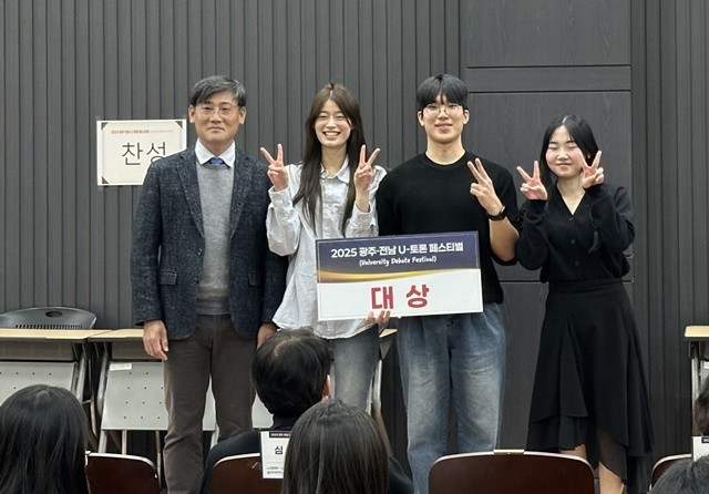 이번 대회는 광주·전남권 8개 대학이 참가한 권역 단위 토론대회로, ‘AI 창작물에 저작권을 부여해야 하는가’를 주제로 진행됐다. 예선부터 결승까지 논리 구성력, 반박의 정확성, 자료 활용 능력, 팀워크, 발표 태도 등을 종합 평가해 수상팀을 선정했다.