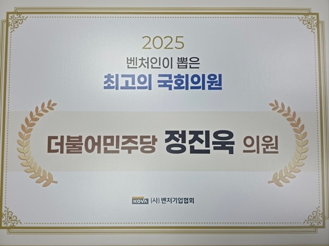 [위키트리 광주전남취재본부 노해섭 기자]인터넷 서점 ‘모닝365’를 창업하며 대한민국 1세대 벤처 붐을 이끌었던 기업가가, 이제는 국회에서 벤처·스타트업의 가장 든든한 ‘수호천사’로 우뚝 섰다. 국회 산업통상자원중소벤처기업위원회 소속 정진욱 의원(더불어민주당, 광주 동남갑)이, 벤처기업인들이 직접 뽑은 ‘2025 최고의 국회의원’으로 선정되는 영예를 안았다.