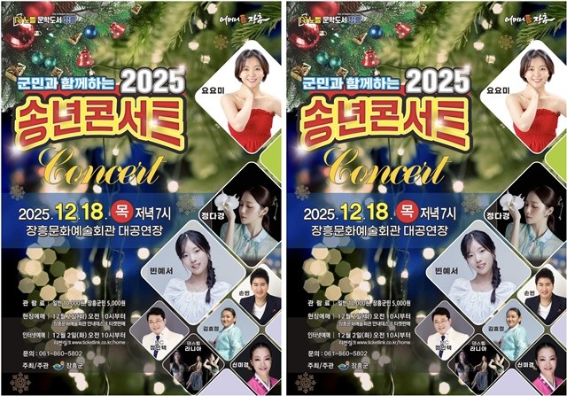 장흥군 관계자는 “올 한 해 정말 고생 많으셨던 우리 군민들께서, 이번 공연을 통해 잠시나마 모든 시름을 잊고 행복한 시간을 보내시길 바란다”며, “흥겨운 트로트 가락과 함께 2025년을 즐겁게 마무리하고, 희망 가득한 새해를 맞이하시길 기원한다”고 전했다.