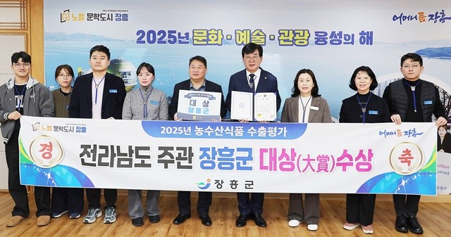 장흥군은 지난 28일 열린 ‘2025 전남 농수산식품 수출기업 전진대회’에서, 22개 시군 중 최고의 성과를 거둔 지자체에 주어지는 ‘수출 우수 시군 평가’ 대상(大賞)을 수상했다.