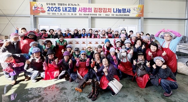 [위키트리 광주전남취재본부 노해섭 기자]화순군(군수 구복규)은 지난 11월 26일부터 11월 28일까지 3일간 ‘2025 내고향 사랑의 김장김치 나눔 행사’를 추진하여 관내 취약계층 가구에 김장김치를 전달했다고 밝혔다.
